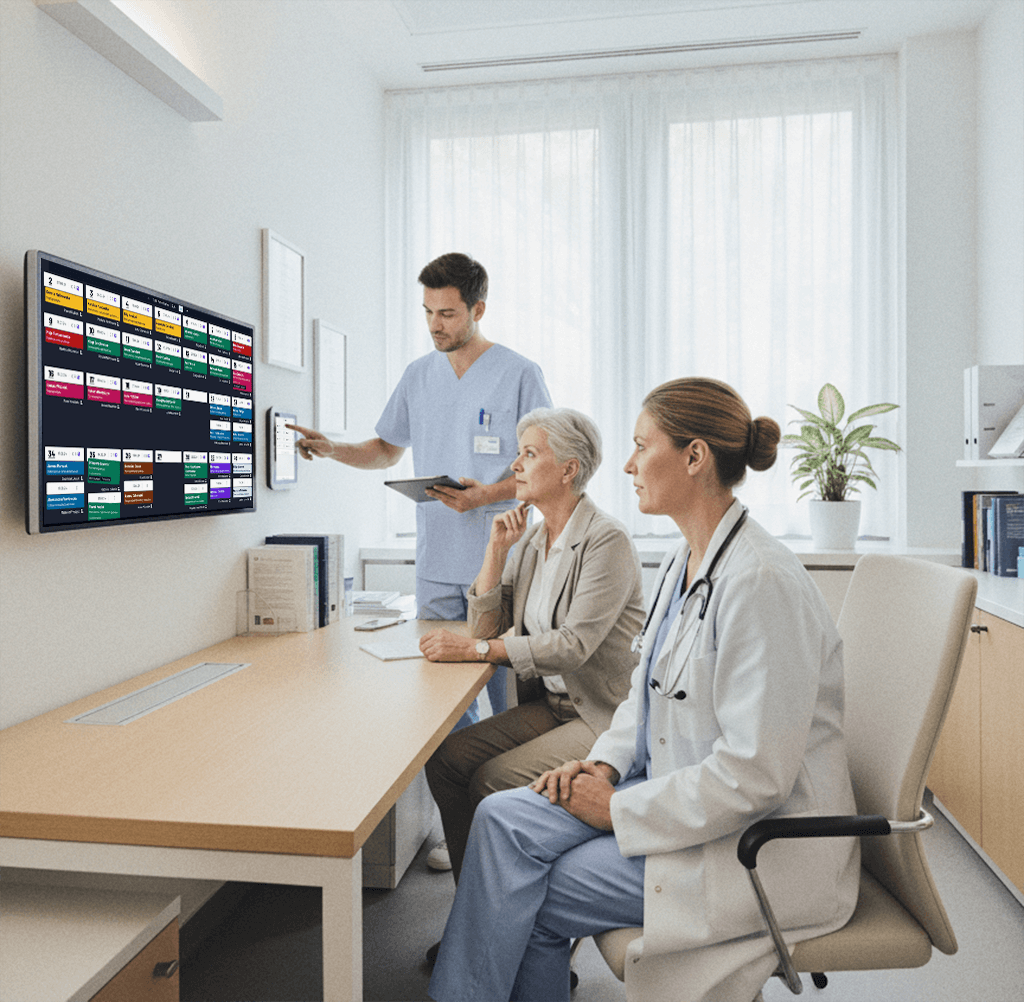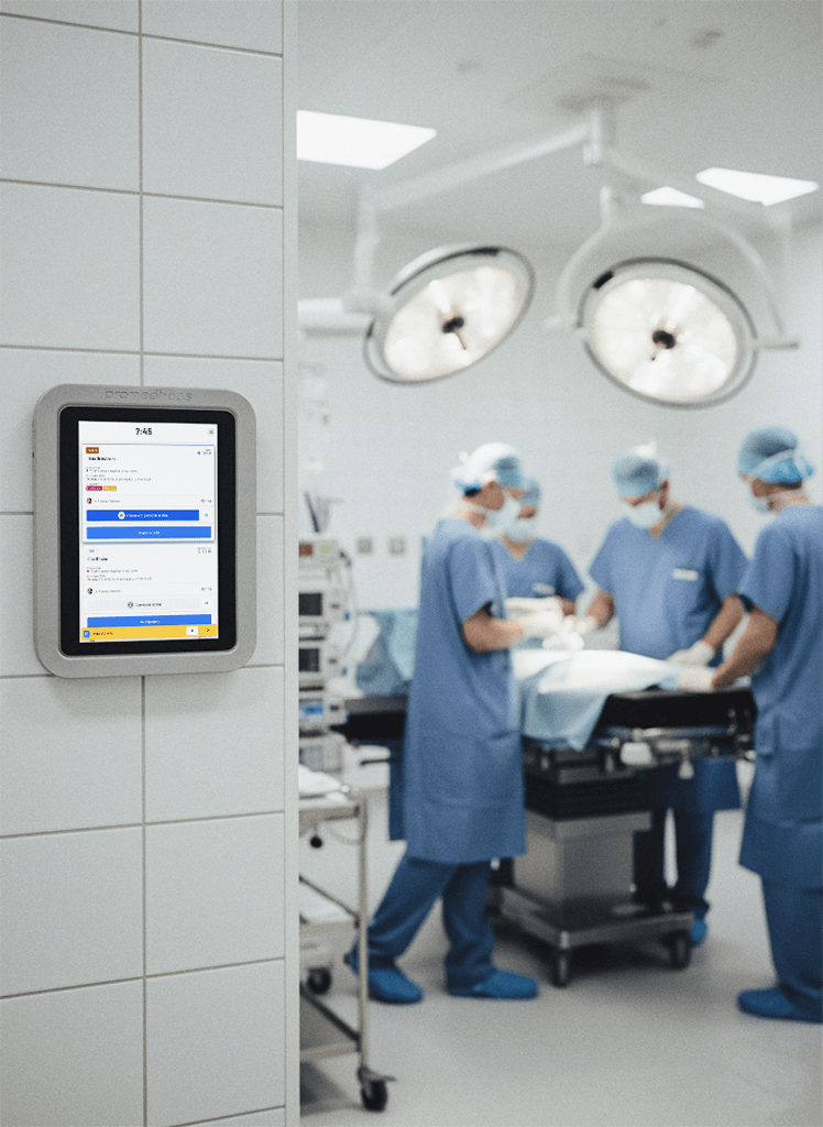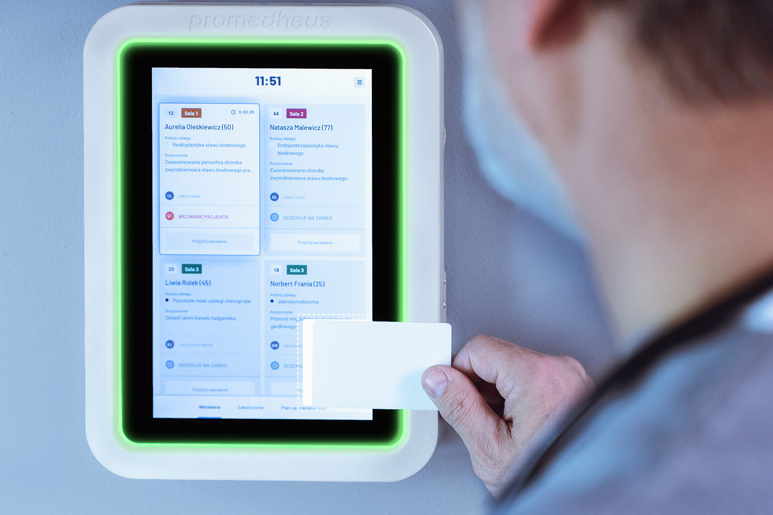 - Blok operacyjny – widok na TV i tabletach, prezentujący statusy sal oraz operacji na żywo, co znacząco ułatwia koordynację nawet podczas najbardziej intensywnych dni.