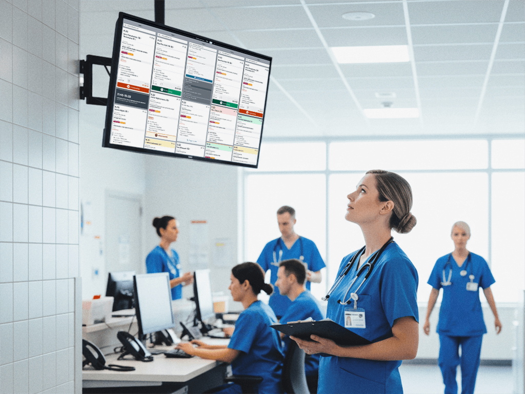 - Blok operacyjny: tutaj status sal i pacjentów prezentowany jest na dużych ekranach TV i tabletach – wszystko aktualizuje się na żywo, więc zespół widzi, gdzie i kiedy trzeba działać. Umożliwiło to sprawne zarządzanie nawet podczas najbardziej intensywnych dni. -zredukowało to czas koordynacji.